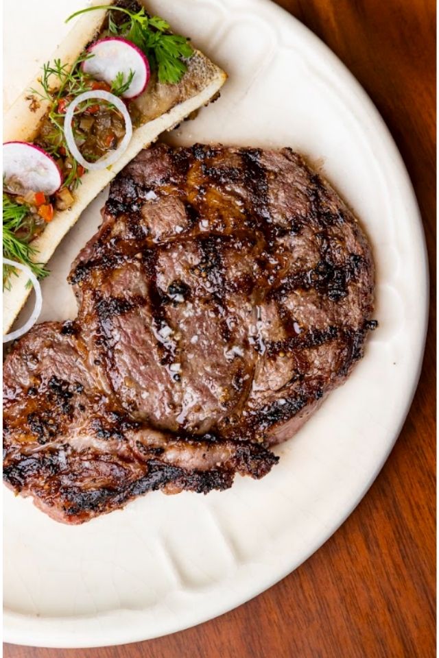 - Un rib eye jugoso, preparado para resaltar la textura y el punto exacto de la carne.