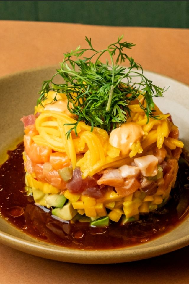 El mango no solo aporta color y frescura a esta propuesta, también suma un carácter único que transforma el sabor del salmón y el atún en una experiencia más vibrante y memorable. Una fusión que demuestra cómo un ingrediente puede elevar la experiencia gastronómica a otro nivel.