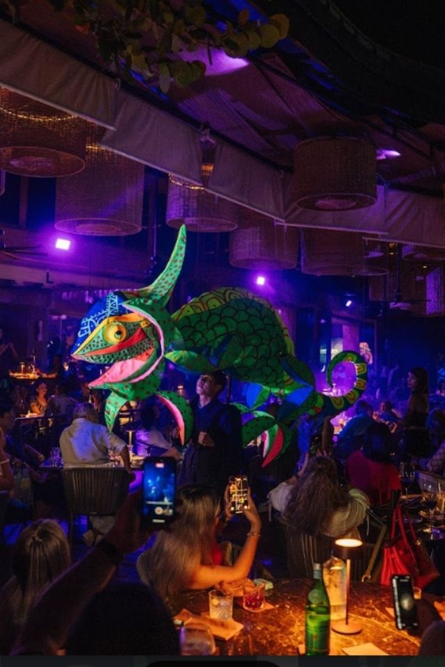As the dishes arrive at the table, the show seamlessly integrates into the ambiance. It doesn’t interrupt the evening; it enhances it. The alebrije show adds dynamism to the evening, creating a perfect balance between culinary entertainment and hospitality, ideal for sharing with friends, as a couple, or for special celebrations.